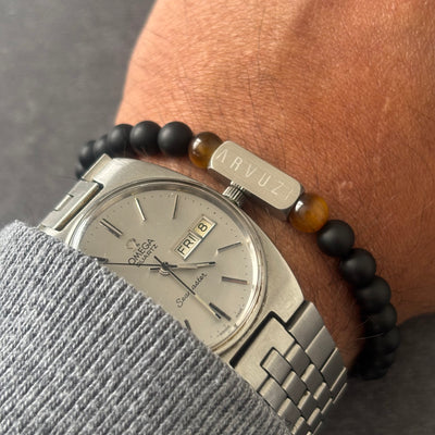 Arvuzi bracelets are crafted with durable, water-resistant materials, including stainless steel and natural stones making them safe for everyday wear.